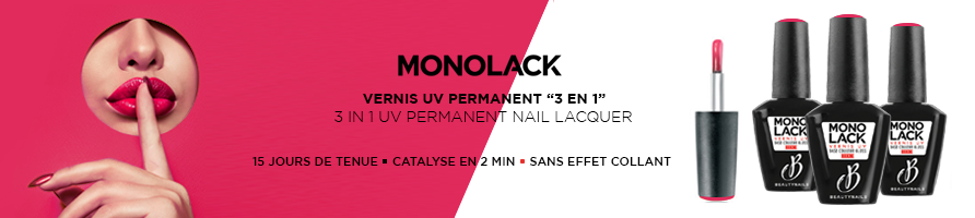5,36 € -70% 17,88 €Vernis UV Permanent "3 en 1", découvrez l'innovation MONOLACK® signé BEAUTYNAILS, qui vous offre une rapidité et une facilité de pose sans équivalent, pour 15 jours de tenue !