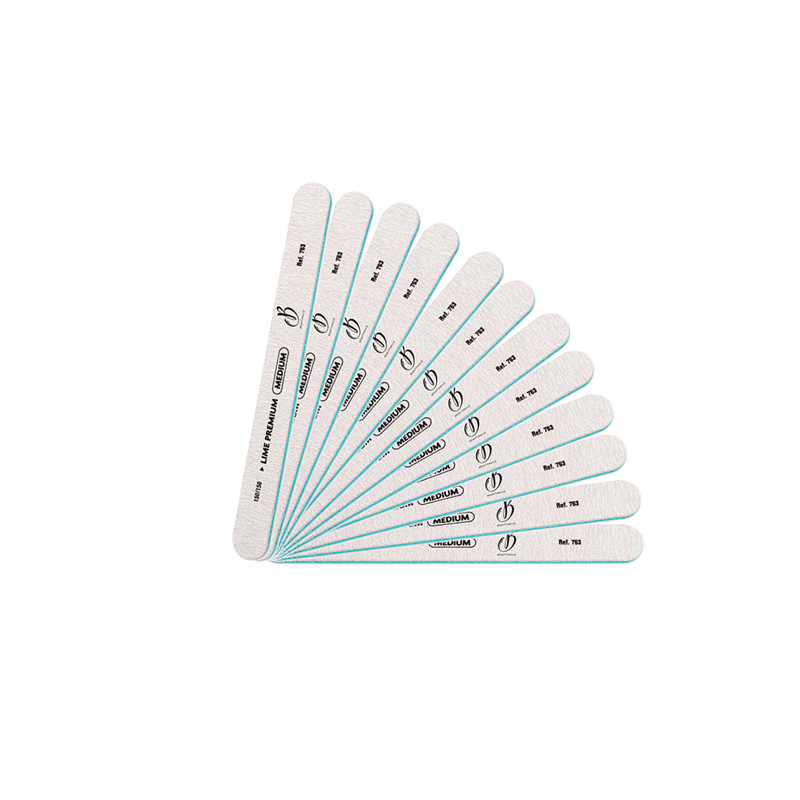 Limes pour ongles de forme droite ultra souple et résistantes pour le façonnage des ongles artificiels. Garanties 4 fois plus résistantes que les limes normales.