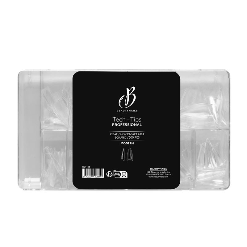 Les Tech Tips sont de la même matière que les Soft Gel Tips ( capsules américaines, Gel-x) mais elles s’appliquent au bout de l’ongle comme les capsules classiques. Souples et résistantes, elles peuvent être collées avec les Rubber Base, Fiber Gel ou la Colle classique.