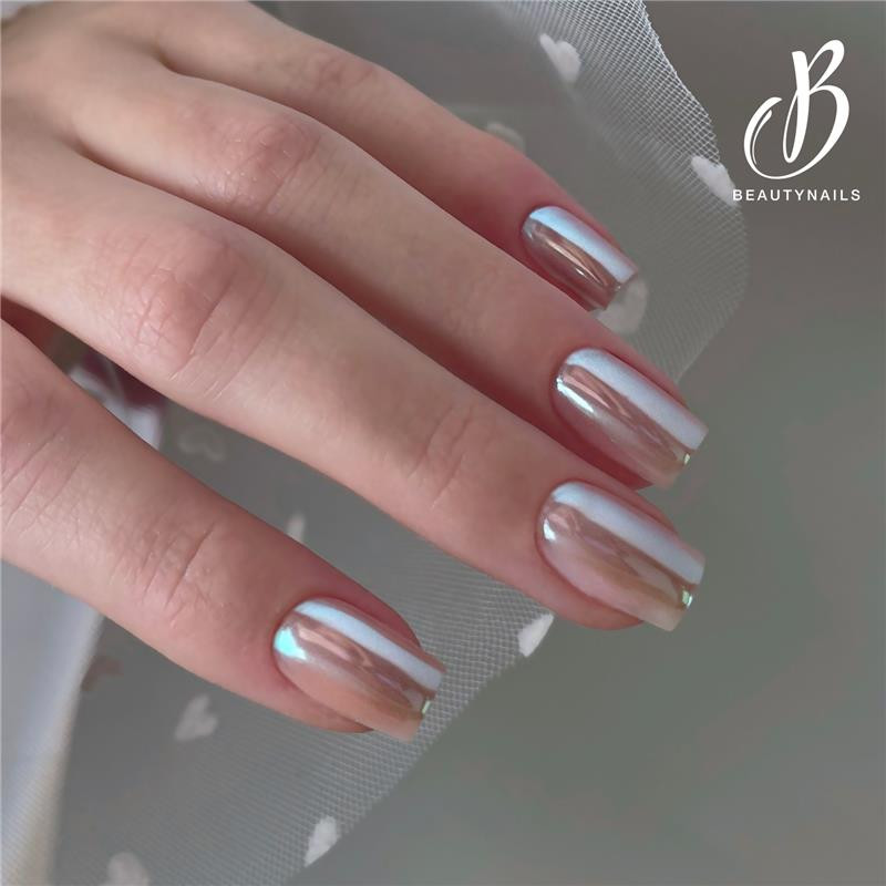 Le Moonlight Chrome est une poudre métallique colorée qui permet un effet aurora sur vos poses d’ongle. La couleur varie selon la base de couleur utilisée.