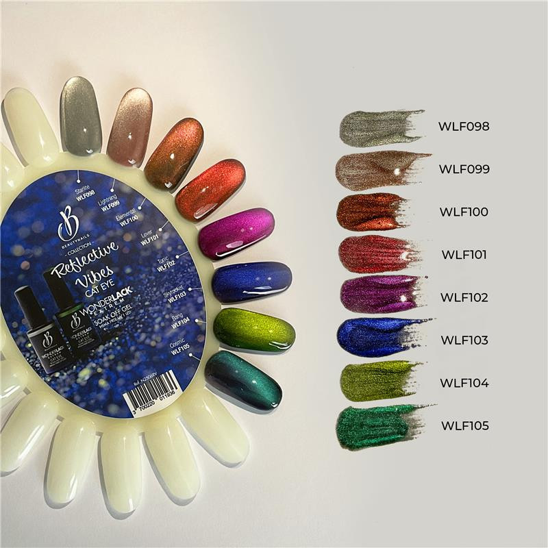 Les coloris spéciaux métalliques aux pigments magnétiques permettent de créer des effets Glow profonds, chaque pose sera unique.