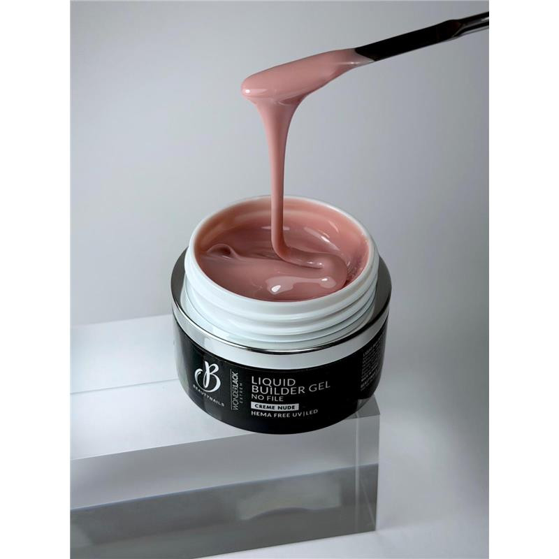 Le Liquid Builder Gel No File sans HEMA est un builder in a bottle, décliné en plusieurs teintes.