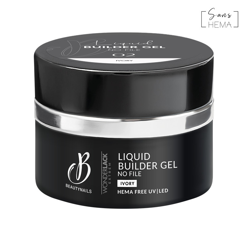 Le Liquid Builder Gel No File sans HEMA est un builder in a bottle, décliné en plusieurs teintes.