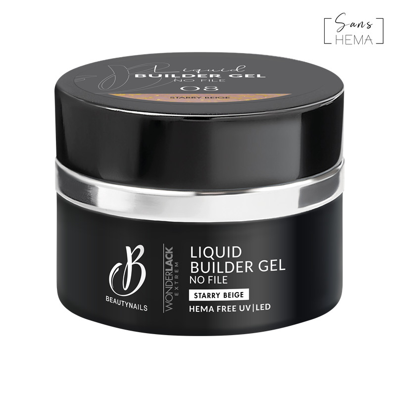 Le Liquid Builder Gel No File sans HEMA est un builder décliné en plusieurs teintes.